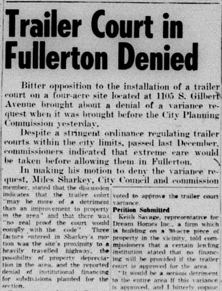 The preferred type of housing in Fullerton was the single-family home. Trailer parks and multi-family apartments were frowned upon and often denied approval.