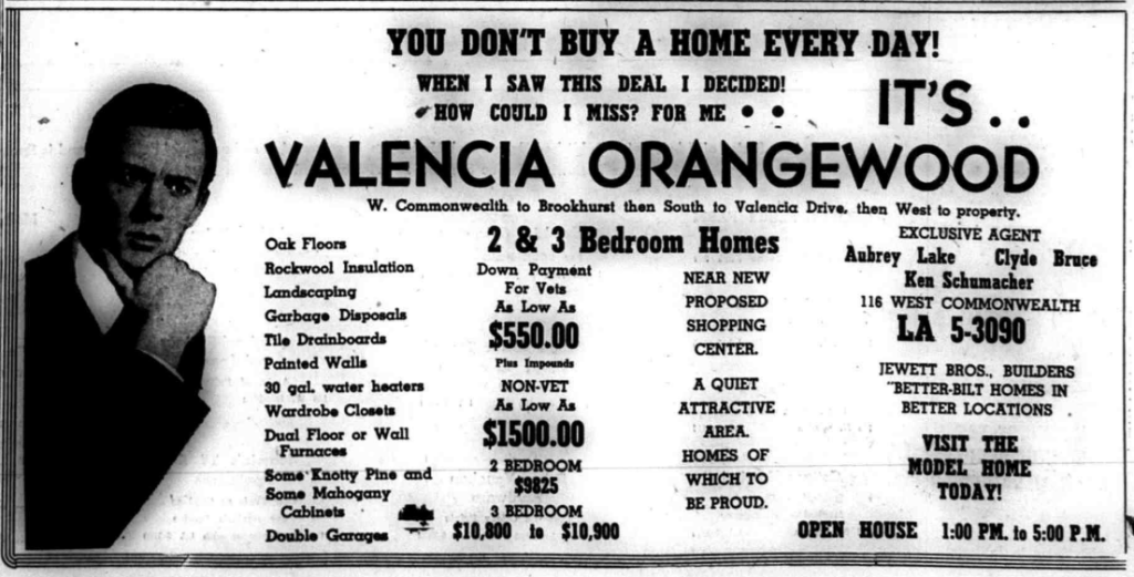 Fullerton continued its phenomenal postwar growth, with new shopping centers, housing subdivisions, industry, and schools replacing orange groves.