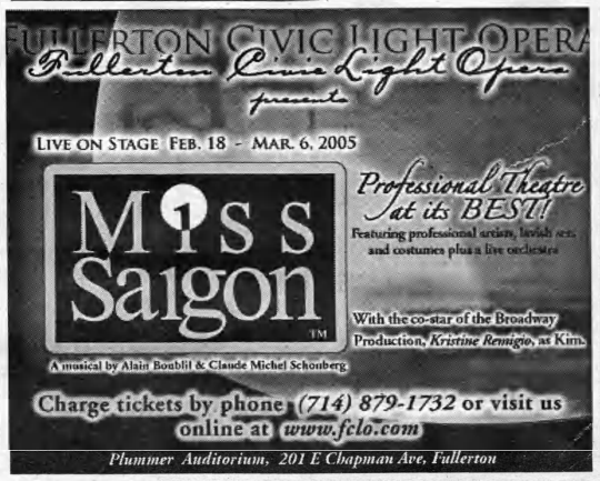 For many years, Fullerton had a theater group called Fullerton Civic Light Opera that staged plays and musicals at the High School Auditorium. Sadly, they are no more, and their former headquarters is now a pet food store.
