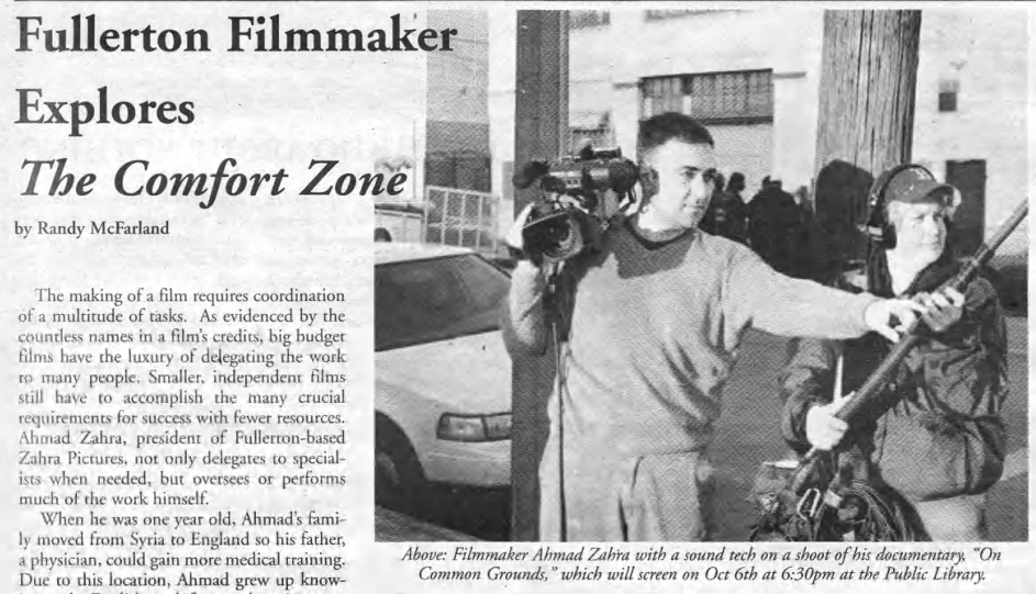In other film news, a young Fullerton filmmaker named Ahmad Zahra (who is now on city council) held some local screenings of his film “On Common Grounds” which is a documentary about three different faith groups (one Christian, one Jewish, and one Muslim) working together to build a house for a poor family in Mexico.