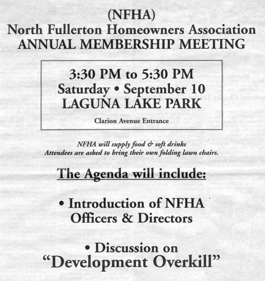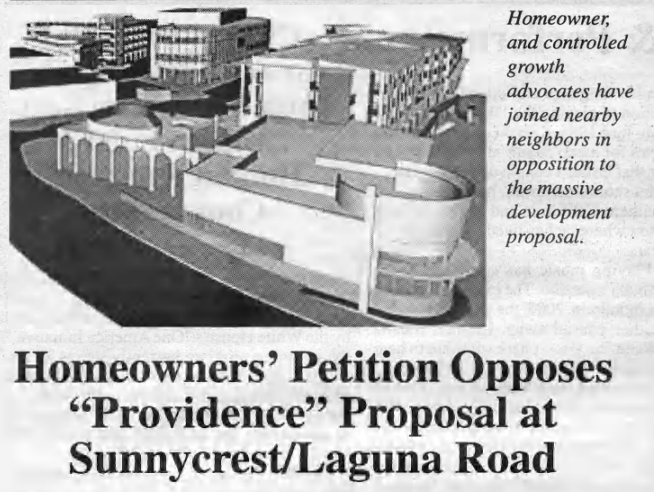 “Overdevelopment is a problem facing the entire city and, before it is too late, citizens should let appointed and elected officials know they are concerned with the direction the city seems to be taking,” stated representatives from North Fullerton Homeowners Association, Fullerton Citizens for Smart Growth and Residents Against Providence Development.
