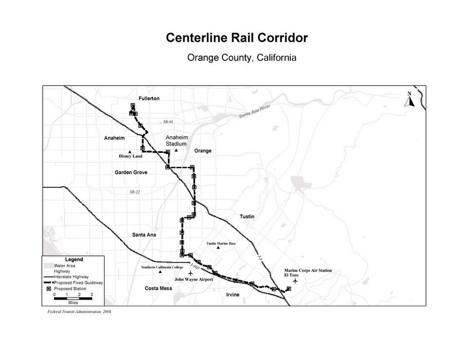 Facing opposition from cities like Irvine and Anaheim, the Centerline idea was shortened to just 9 miles. Then, when federal matching funds failed to materialize, the whole project was scrapped.
