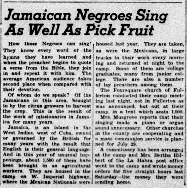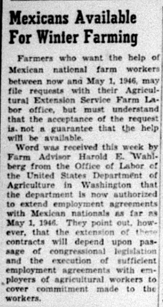 An article in the News-Tribune expressed local concerns about the new arrivals: “Will the Mexican nationals remain in Orange county permanently? No! They are here by special contract and will return to Mexico at the expiration of that contract.”